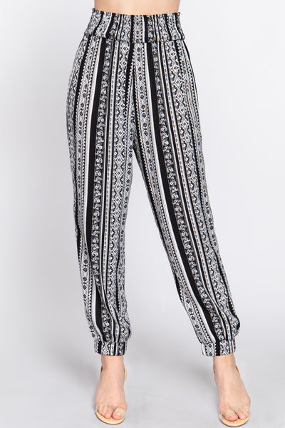 SMOCKED WAIST PRINTED JOGGER PANTS