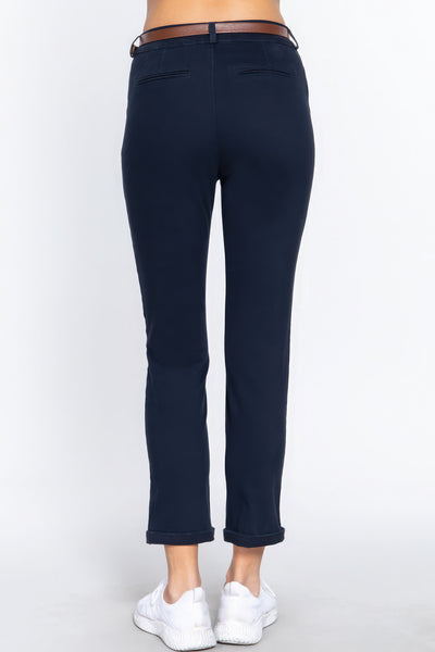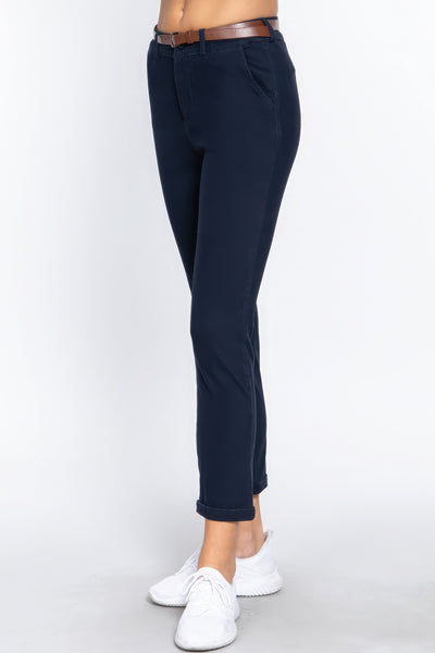 Enhance your wardrobe with the Cotton Spandex Twill Long Pants with Belt in Dark Navy. Add them to your cart now and experience the perfect blend of fashion and comfort!
