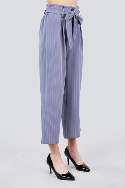 Imported S.M.L BUTTON DOWN PAPERBAG CULLOTE STRIPE PANTS 100% Polyester Blue  ACT Button Down Paperbag Cullote Stripe Pants