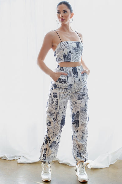 This set stands out with its functional design and modern aesthetic. Whether you're running errands or exploring the city, the versatile crop top and cargo pants combination offers both style and practicality.