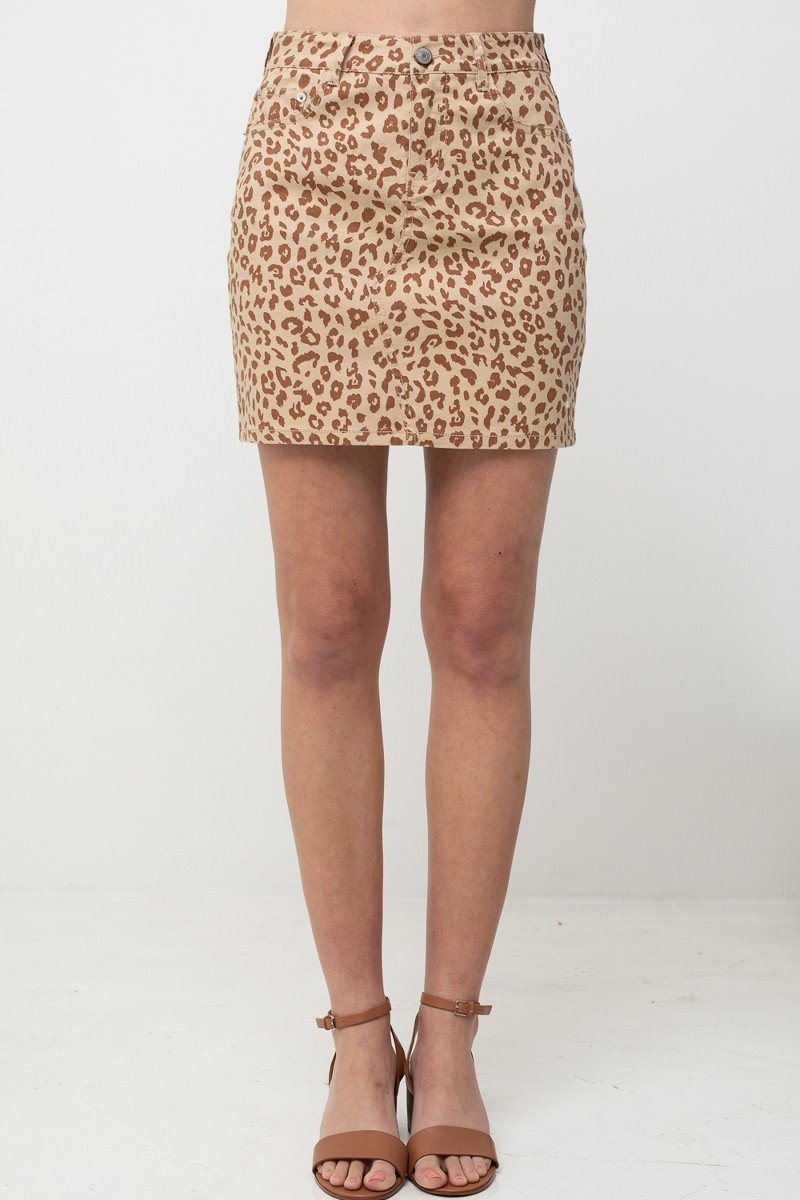 Imported S.M.L LEOPARD PRINTED COTTON SPAN MINI SKIRT 78% Cotton 20% Polyester 2% Spandex Khaki  LOV Leopard Printed Cotton Span Mini Skirt