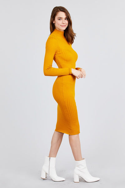 Long Sleeve Mock Neck Rib Sweater Midi Dress