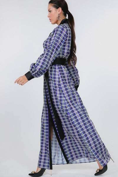 Plaid Shirt Maxi Dress With Gold Buckle Belt