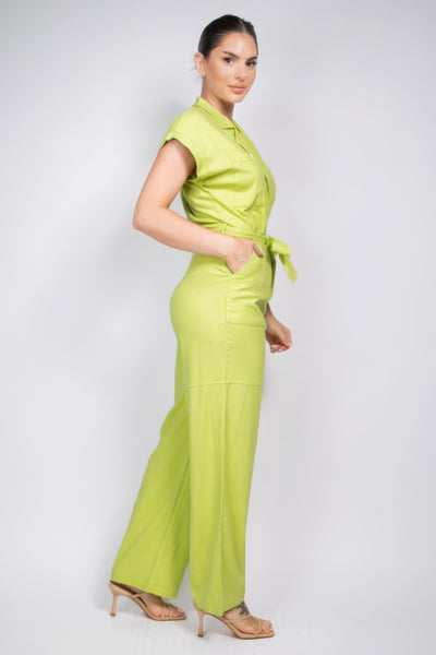 Add our Belted Button-Down Linen Jumpsuit in Lime to your cart now and embrace effortless sophistication and comfort for every occasion!