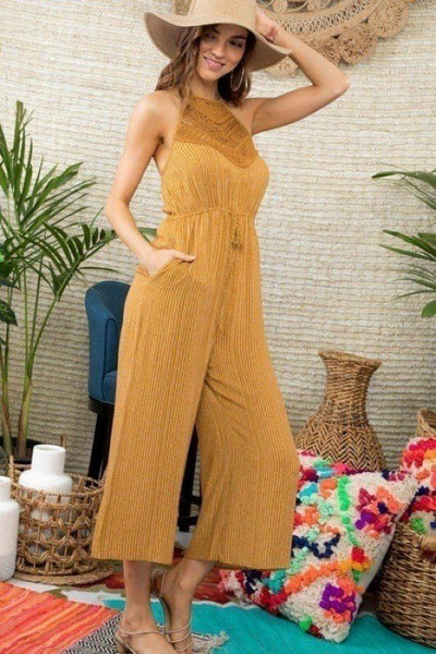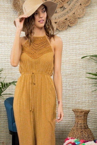 Imported S.M.L Halter Neck Front Lace Patch Detail Printed Jumpsuit 100% Rayon Luca Gold MAI