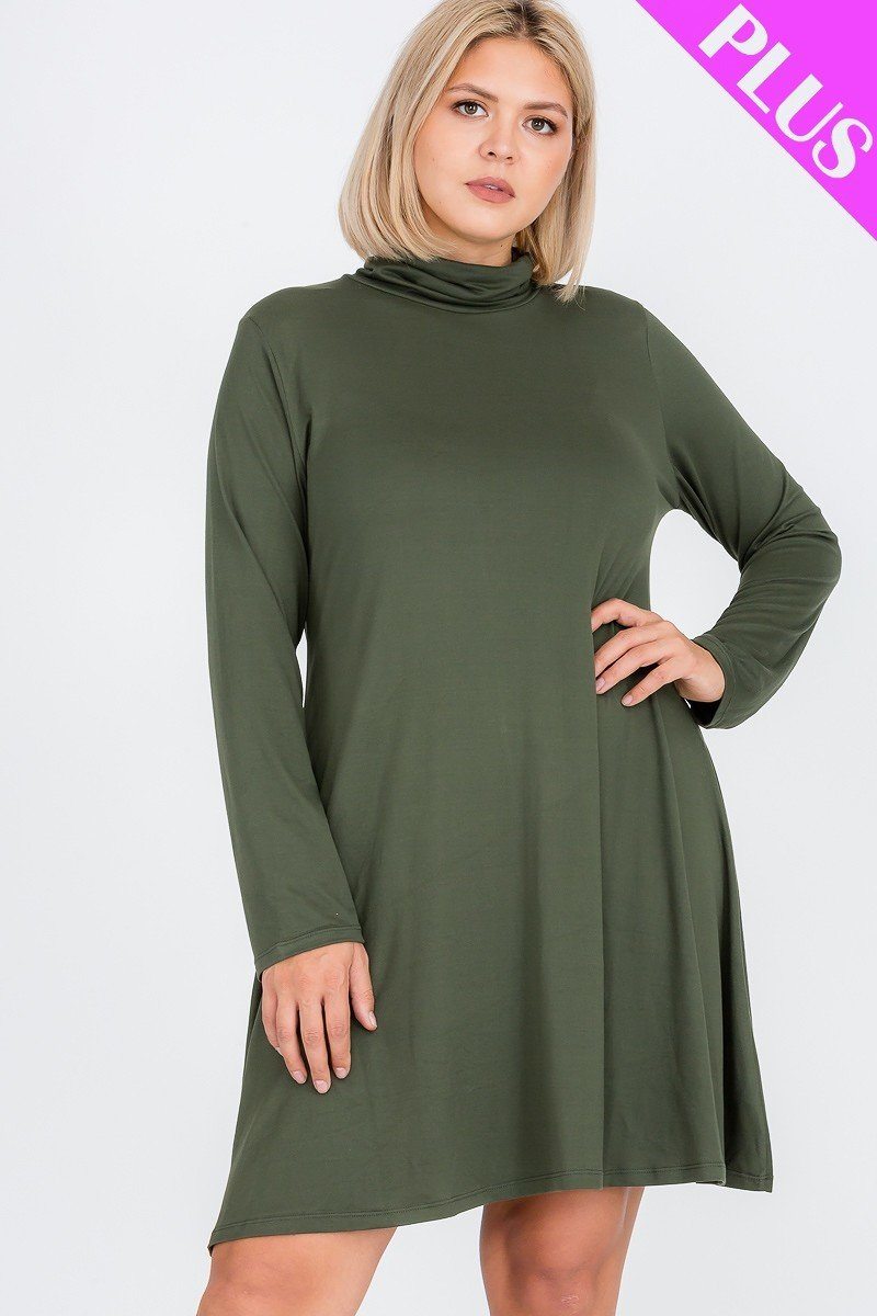 Imported  1XL.2XL.3XL Stretch knit. Long sleeve. Mock neck. Solid 92% Polyester 8% Spandex Olive CLA  Plus Size Flare Dress