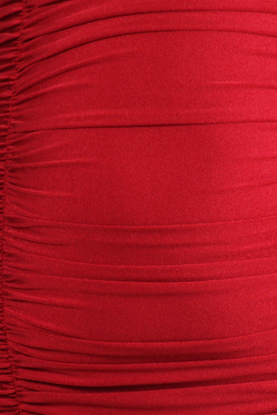 Plus size allover lace, fitted top with a round neckline and ruffle trim