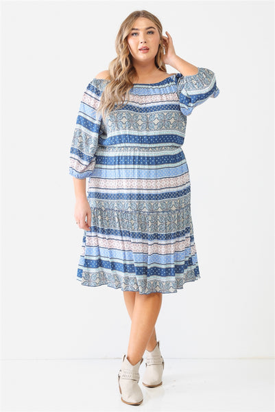 Combo, printed, textured, solid color, ruffle details, round neckline, midi sleeves, flare hem, mini length, semi-stretchy, lined, non-sheer, casual, cute, lifestyle, girlish, must-have