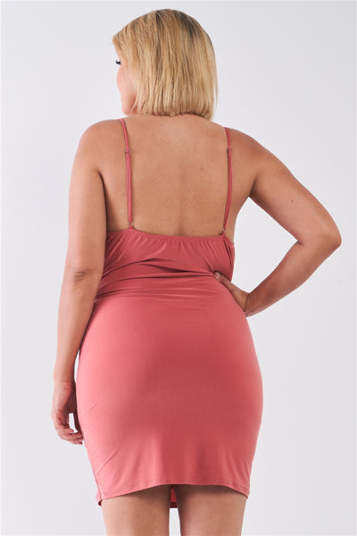 Plus Size Sleeveless Silky Cowl Neck Bodycon Cami Mini Dress