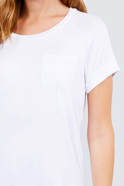 SHORT RAGLAN SLEEVE ROUND NECK w/POCKET RAYON SPANDEX TOP