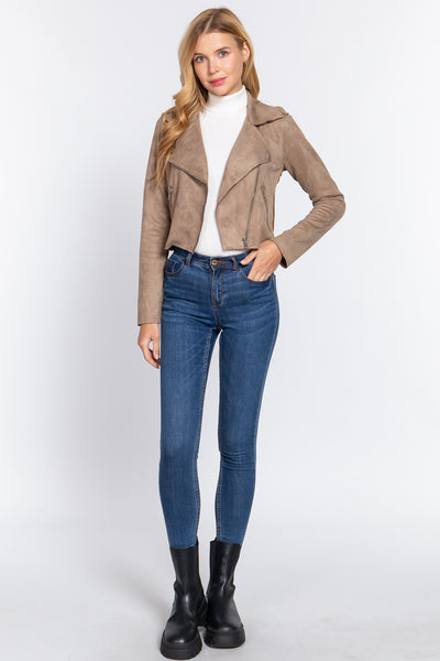 LONG SLV BIKER FAUX SUEDE SHORT JACKET
