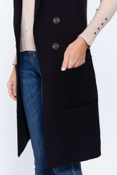SLEEVELESS NOTCHED COLLAR WITH SIDE POCKET LONG SWEATER VEST
