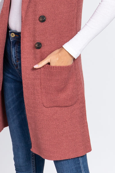 SLEEVELESS NOTCHED COLLAR WITH SIDE POCKET LONG SWEATER VEST