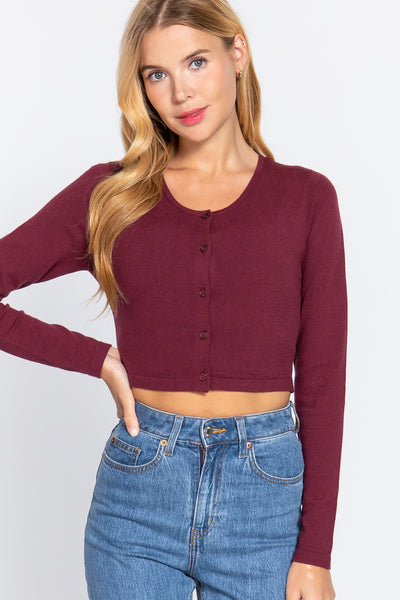 ImportedS.M.LLONG SLV ROUND NECK VISCOSE SWEATER49% Viscose 28% Polyester 25% Nylon Burgundy ACT  Long Slv Round Neck Viscose Sweater Item Measurements: SIZE SMeasurements: SIZE SLength:14" Waist:32" Bust:34"