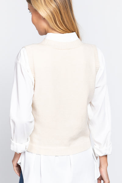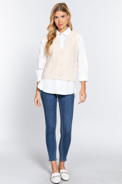 V-NECK CABLE SWEATER VEST CARDIGAN