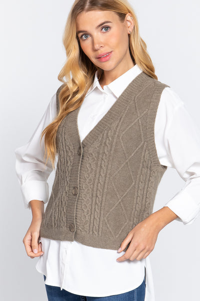 V-NECK CABLE SWEATER VEST CARDIGAN