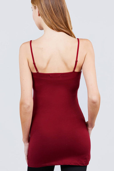 Basic Adjustable Spaghetti Strap Tunic Cami W/ Shelf Bra