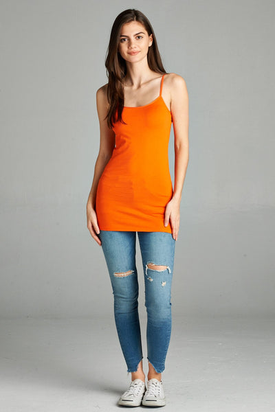 Basic Adjustable Spaghetti Strap Tunic Cami W/ Shelf Bra