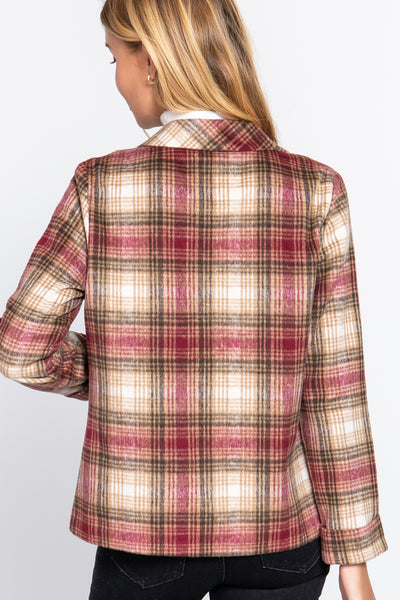 LONG SLEEVE NOTCHED COLLAR PLAID JACKET