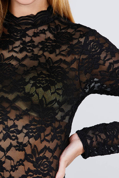 LONG SLEEVE SCALLOP MOCK NECK LACE BODYSUIT
