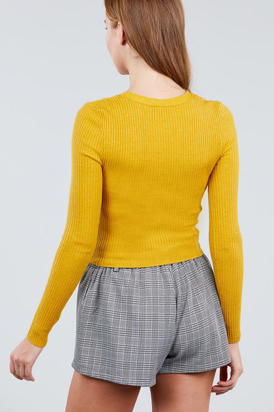 Imported S.M.L LONG SLEEVE V-NECK W/BUTTON DOWN CROP CARDIGAN 50% Viscose 30% Polyester 20% Nylon Mustard ACT