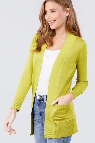 Imported S.M.L LONG SLEEVE RIB BANDED OPEN SWEATER CARDIGAN W/POCKETS 65% Polyester 33% Rayon 2% Spandex Lime Green  ACT Long Sleeve Rib Banded Open Sweater Cardigan W/pockets