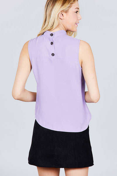 Imported S.M.L SLEEVELESS MOCK NECK BACK BUTTON WOVEN TOP 100% Polyester Lavender ACT