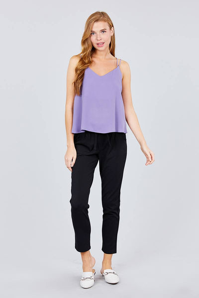 Imported S,M.L V-NECK w/BACK CROSS STRAP CAMI WOVEN TOP 100% Polyester Lavender  ACT ...