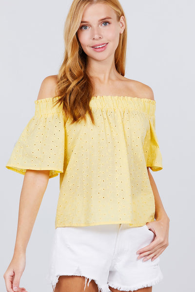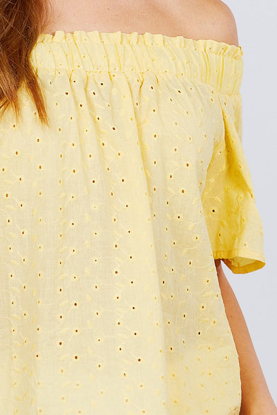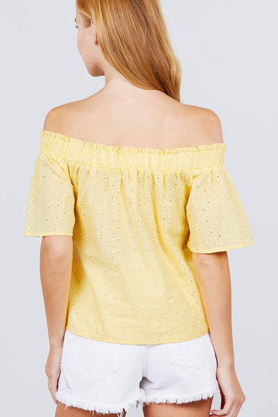 Short Sleeve Off The Shoulder Eyelet Woven Top
