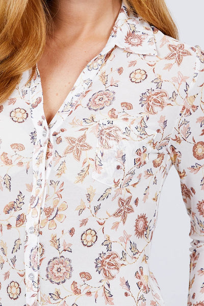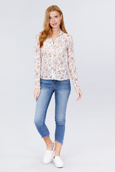 Long Sleeve V-neck W/button Down Print Mesh Knit Shirts