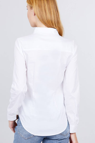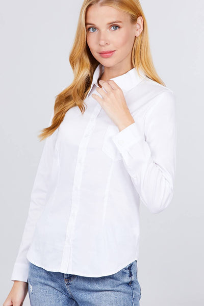 Imported S.M.L LONG SLEEVE PRINCESS LINE ONE SIDE POCKET BUTTON DOWN WOVEN SHIRTS 65% Cotton 32% Nylon 3% Spandex  White  ACT Button Down Woven Shirts