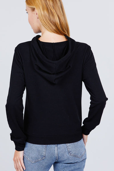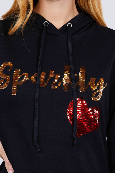 LONG SLEEVE HOODIE SEQUINS EMBROIDERED FRENCH TERRY PULLOVER TOP
