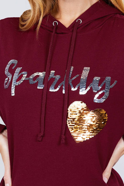 LONG SLEEVE HOODIE SEQUINS EMBROIDERED FRENCH TERRY PULLOVER TOP