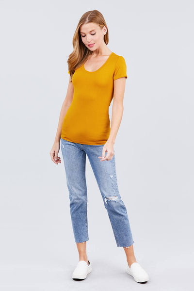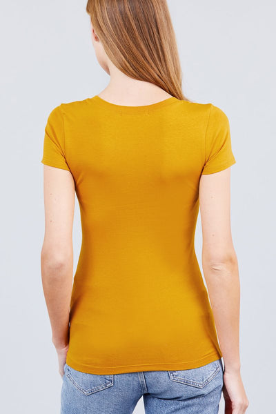 Imported S.M.L SHORT SLEEVE SCOOP NECK TEE 95% Cotton 5% Spandex Mustard ACT Short Sleeve Scoop Neck Tee