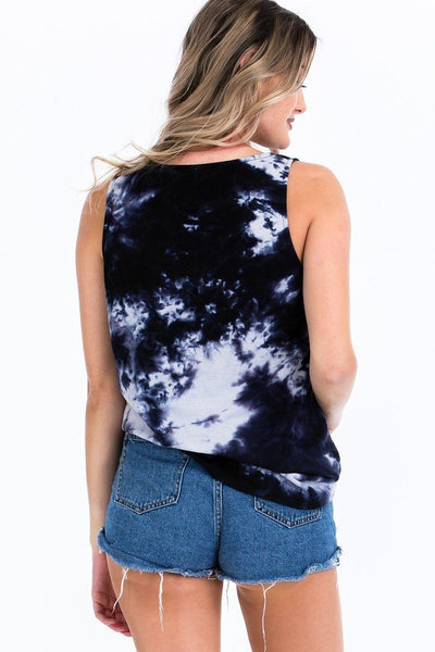 Made In U.S.A S.M.L Tie-dye knit top featured in a scoop neckline and sleeveless 95% Polyester 5% Spandex  Navy CYF Tie-dye Knit Top Featured In A Scoop Neckline And Sleeveless