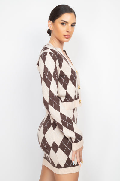 Imported S.M.L Diamond Button-Front Cardigan Top 64% Nylon 15% Viscose 21% Polyester  Cream/Choco IRI Diamond Button-front Cardigan Top Item Measurements: SIZE S Measurements: SIZE SLength:15.5" Waist:32" Bust:34"