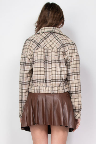 Add our Plaid Button-Down Crop Jacket in Beige/Brown to your cart now and enhance your wardrobe with timeless style and comfort!
