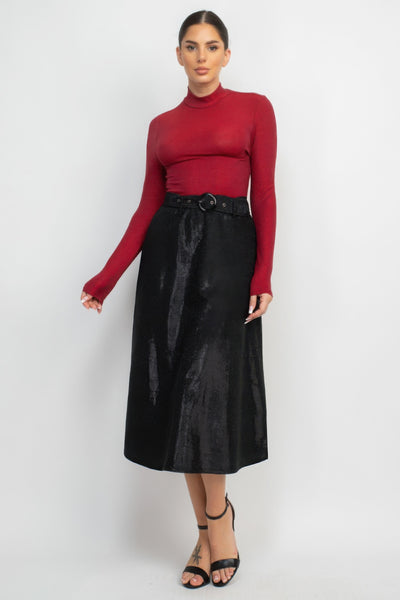 Add a touch of sparkle and sophistication to your wardrobe with our Mock Neck Glittery Bodysuit in Ruby. Add it to your cart now and enjoy the perfect blend of style and elegance!
