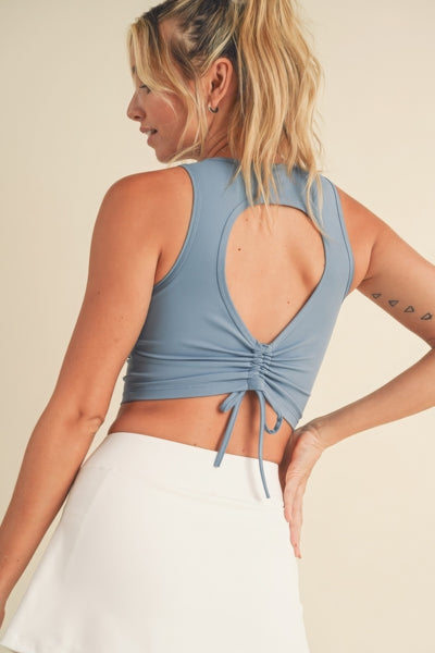 2. Back Cut-Out: The back of the tank top showcases a stylish cut-out design, enhanced with string tie detail for added flair.