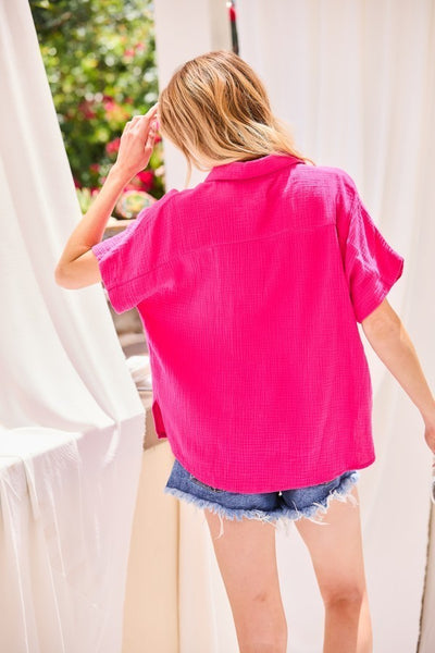 Imported S.M.L Collar Neck Button Down Sides Slit Oversized Solid Shirt Top 100% Cotton  Fuchsia MAI Collar Neck Button Down Sides Slit Oversized Solid Shirt Top Item Measurements: SIZE S Measurements: SIZE S Length:23.5" Waist:42" Bus...