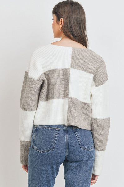 Round Neckline. Color Block Pattern. long Sleeve Sweater. Slight Stretch Fabric