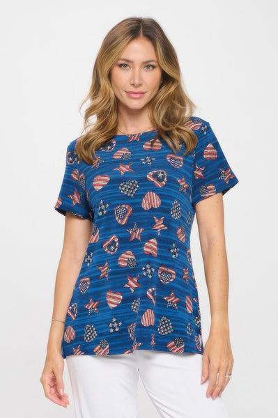Simple and polished, the HIT Boat Neck Short Sleeve Top is a wardrobe essential with modern ease. The boat neckline adds a flattering touch, while the short sleeves make it perfect for warm-weather layering. Made from a comfortable stretch fabric, it offers all-day wearability and a smooth finish. This printed piece is proudly made in the USA for quality you can trust.