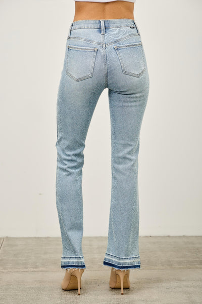 Step into retro-inspired style with this modern take on the classic flare. These mid-rise jeans feature a soft stretch blend for a comfortable, flexible fit that moves with you. Designed with a subtly flared leg and a released hem, they offer a laid-back finish that feels effortlessly cool. The classic 5-pocket styling and zipper fly keep the look timeless, while the raw hem adds a hint of edge. Whether dressed up with heels or styled casually with sneakers, these flares bring versatile style to any wardrobe.